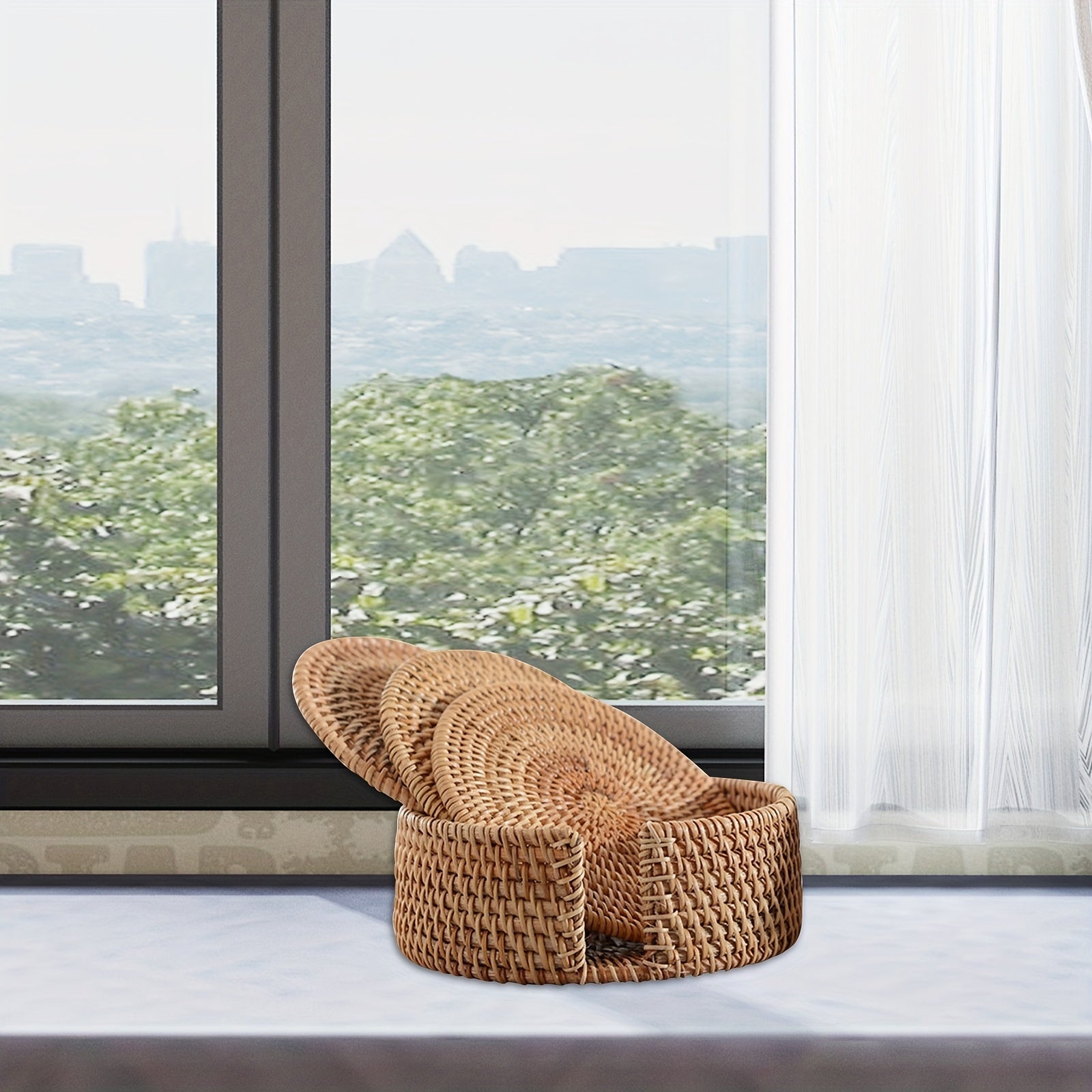 6-Piece Set Bamboo Round Handwoven Trivet & Underliner Coasters with Protective Cover - Heat Resistant Mats for Hot Pots, Pans, Cups, Teapots - Rustic Style for Table & Office Desk - Christmas, Father's Day, Mother's Day, Lab