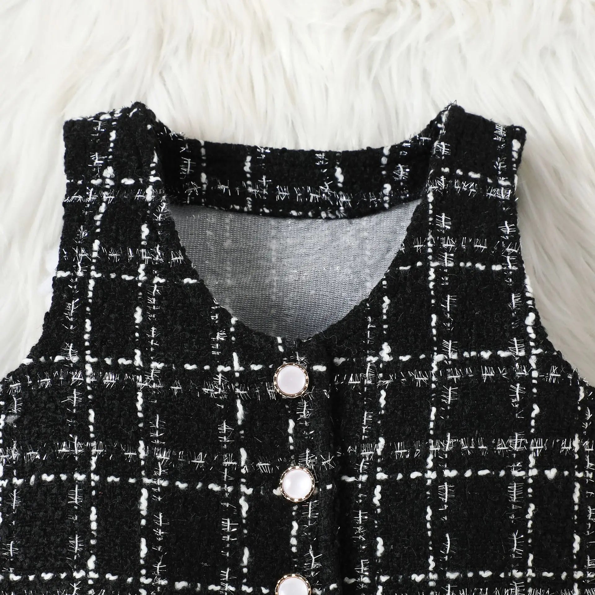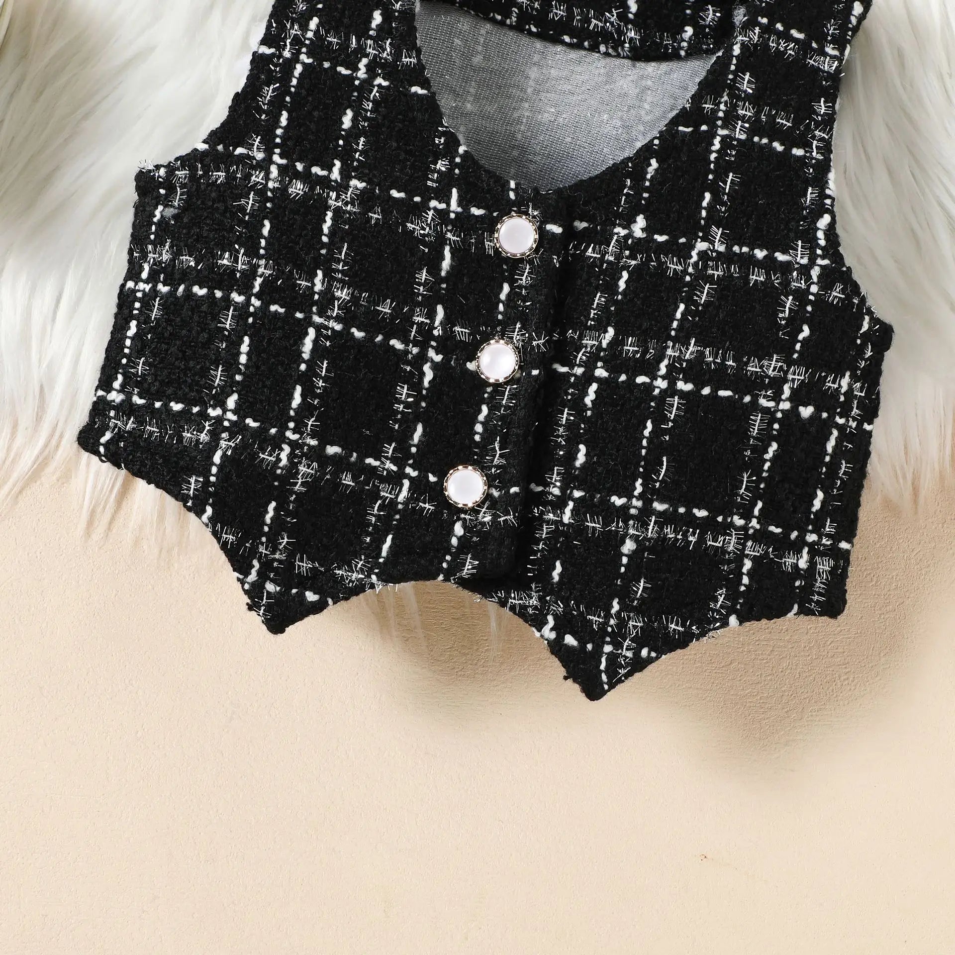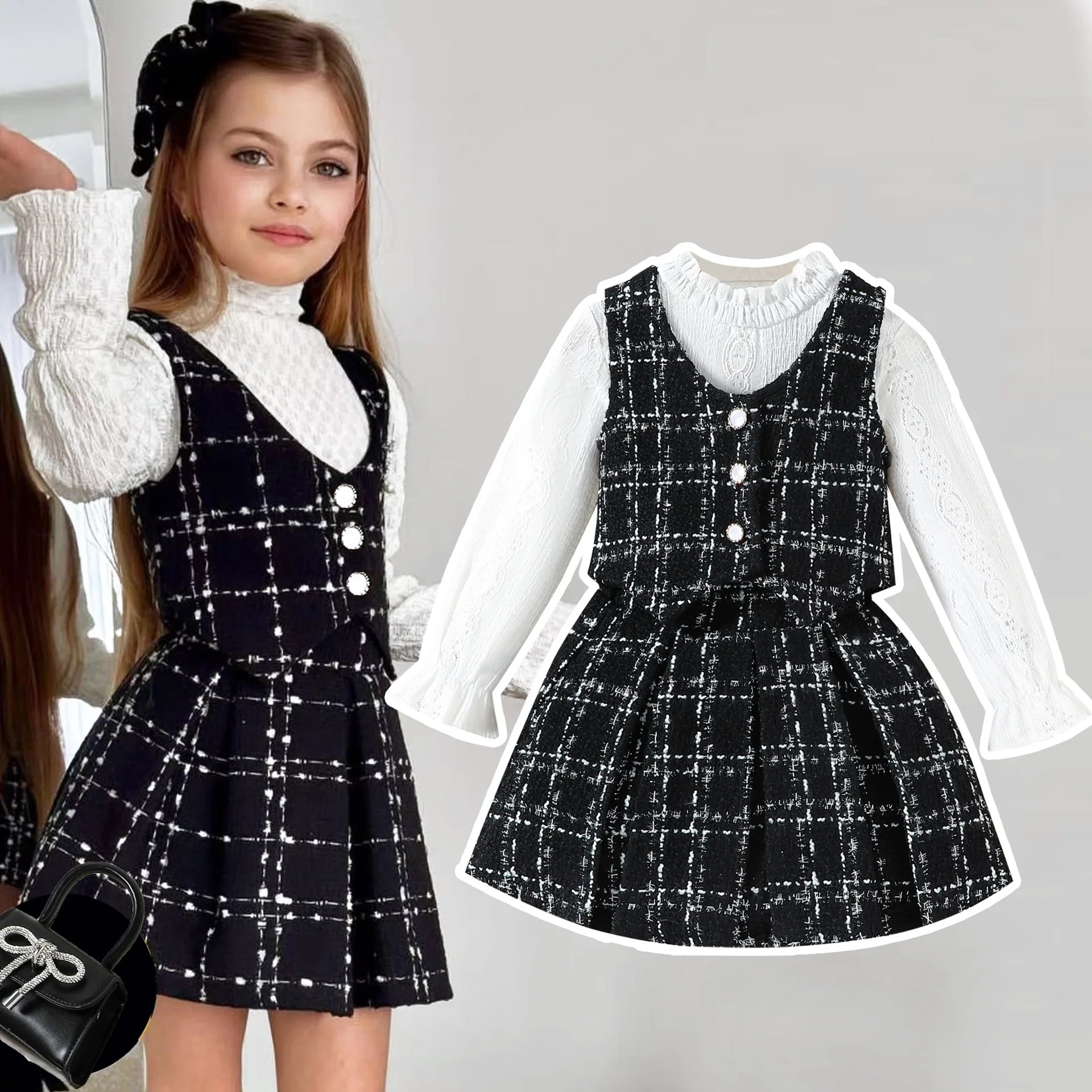 Autumn Winter Fashion Kids Outfits Set Toddler Long Sleeve Lace Tops Plaid Vest Jacket With Skirts For Girls Casual Elegant Wear