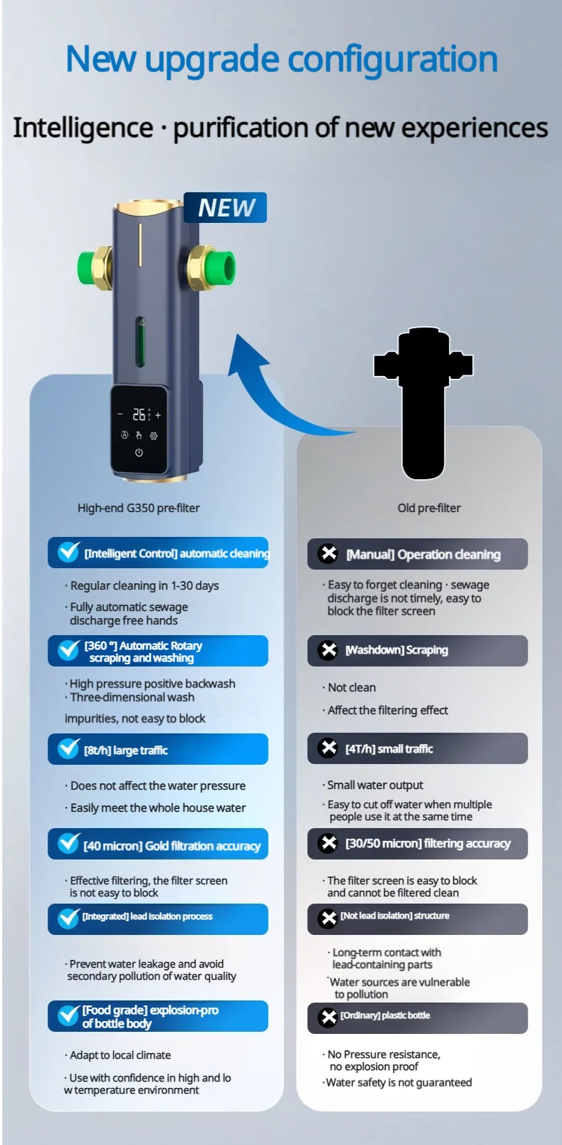 BORVA 8000L/H Smart Home Central Bionic Water Purification Pre-Filter with Automatic Timed Self-Cleaning and High Flow Rate
