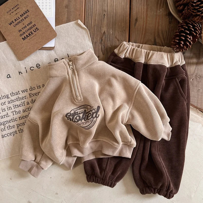 Boys Hoodies Sweatshirts Cotton Thicken Velvet 2024 Khaki Warm Winter Autumn Windproof Baby's Kids Children's Clothing