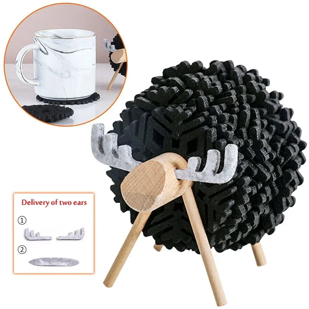 Creative Insulated Coaster Deer Shaped Beverage Coaster Sheep Felt Coaster Water Absorbing Home Office Desk Decorative Ornament