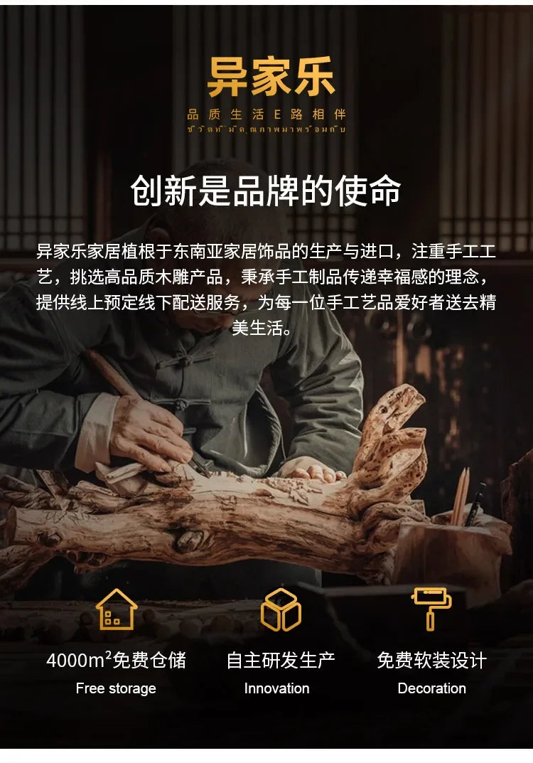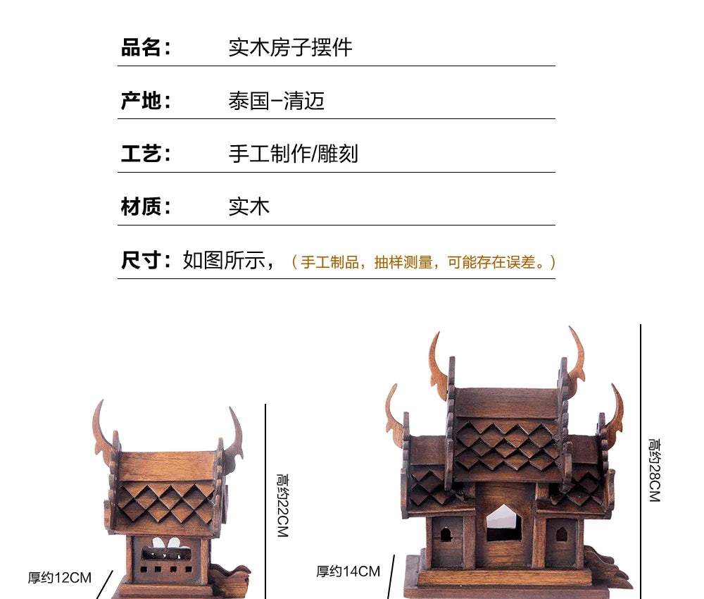 Eco-Friendly Solid Wood Carved House Ornament, Pure Handmade, Living Room, Bedroom Decor, Insect Proof Wood Wax Oil Finished