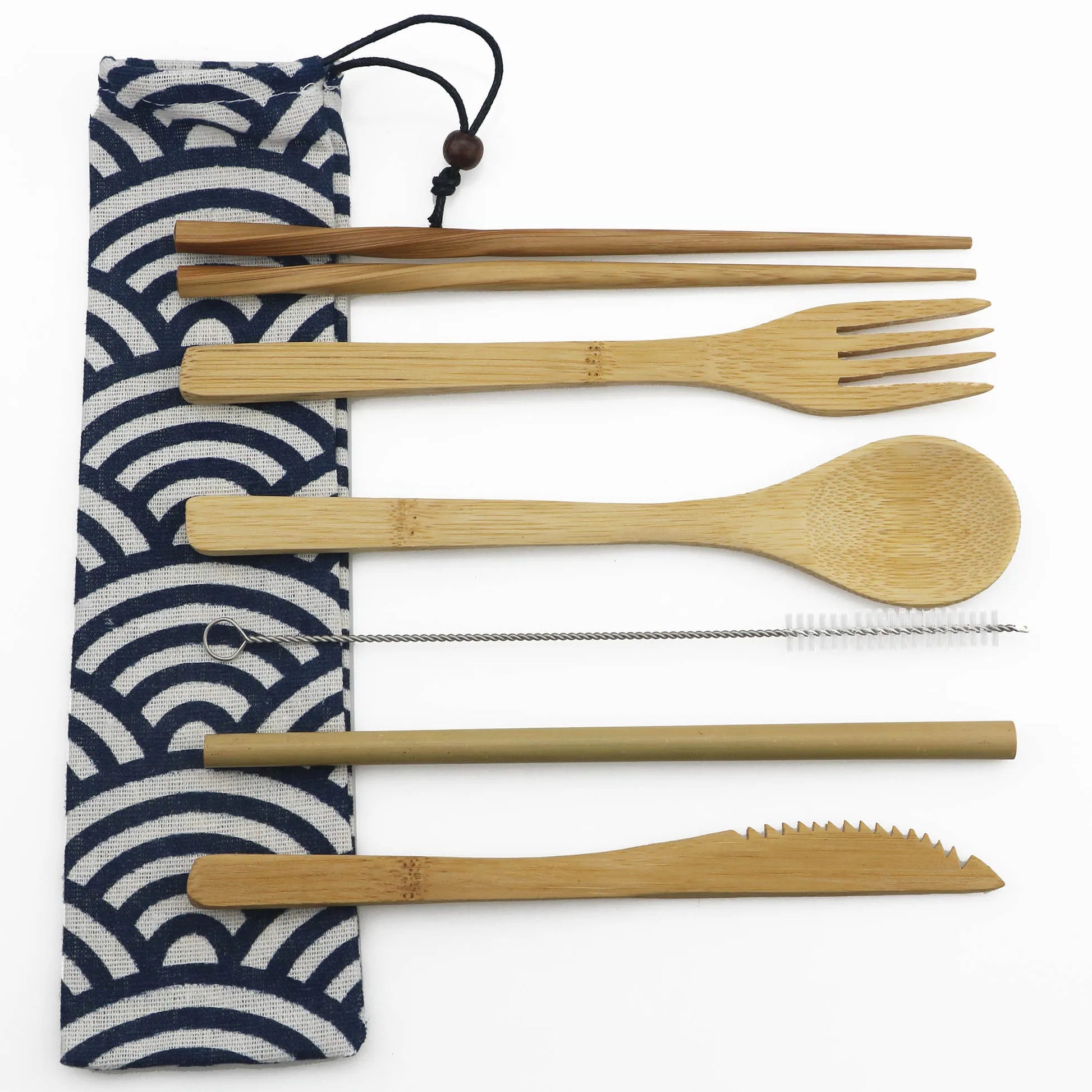 Package Quantity: Knife, Fork, Spoon, Bamboo Straw, Bursh, Pouch 1 Piece of Each
