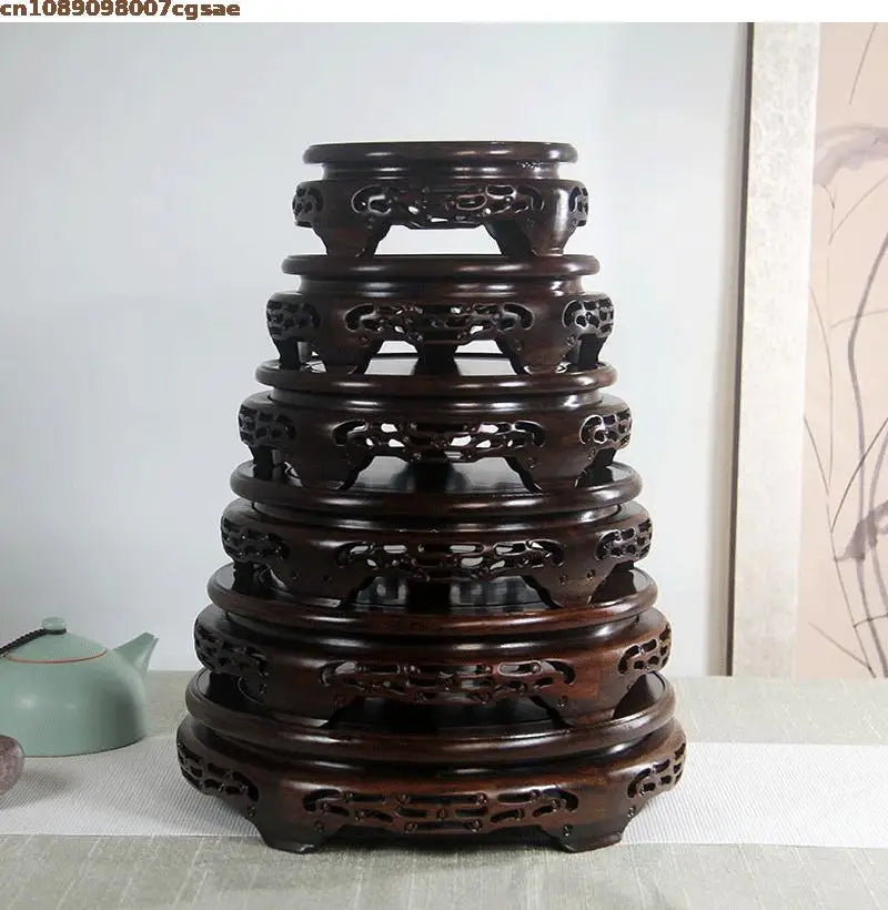 Eco-friendly Wooden Plant Stand Exquisite Carved Bonsai Holder Vase Flower Pot Sorting Table Shelf Home Decoration Wood Pedestal