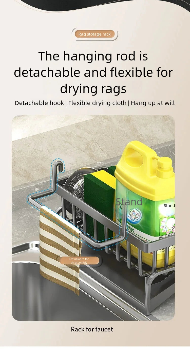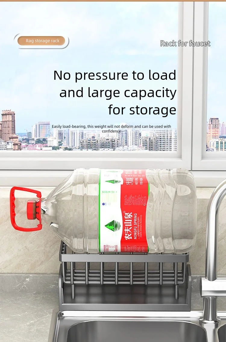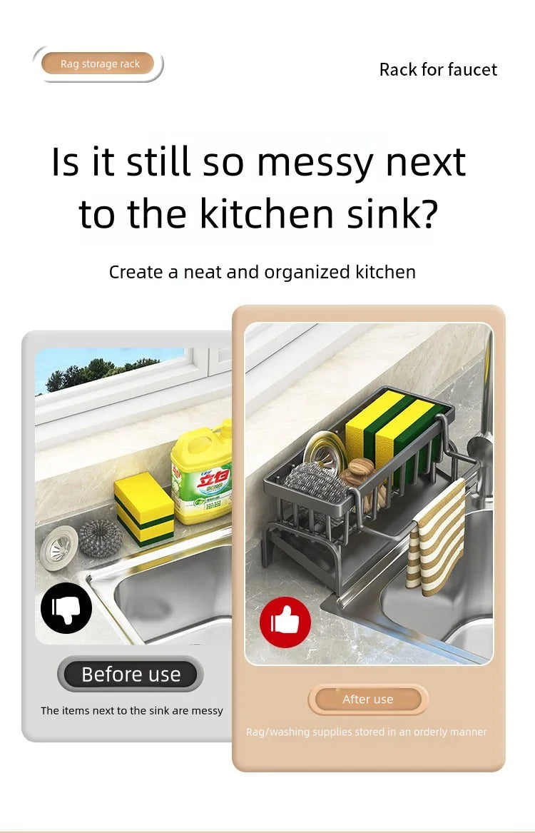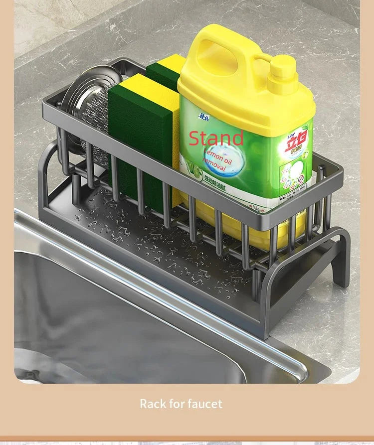 Kitchen Spice Storage Shelf with Drainage Rack, Installation Sink Organizer, Tap-Mounted Shelf for Home Kitchen Accessories