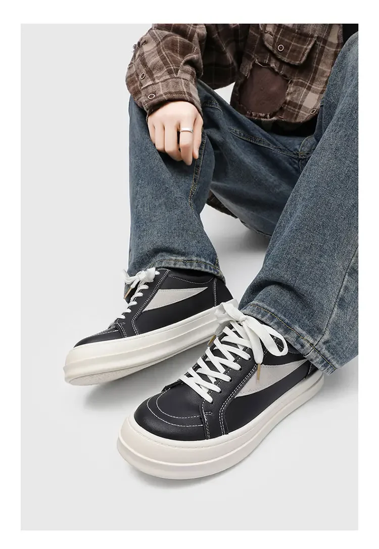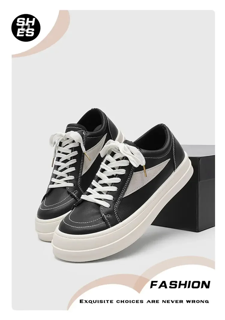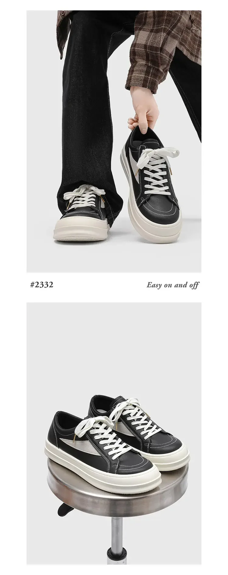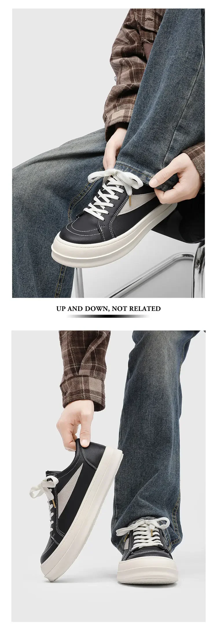 Men's Shoes 2025 New Spring Autumn Design Low Help Casual Thick Bottom Heightening Board Shoes Leather Surface