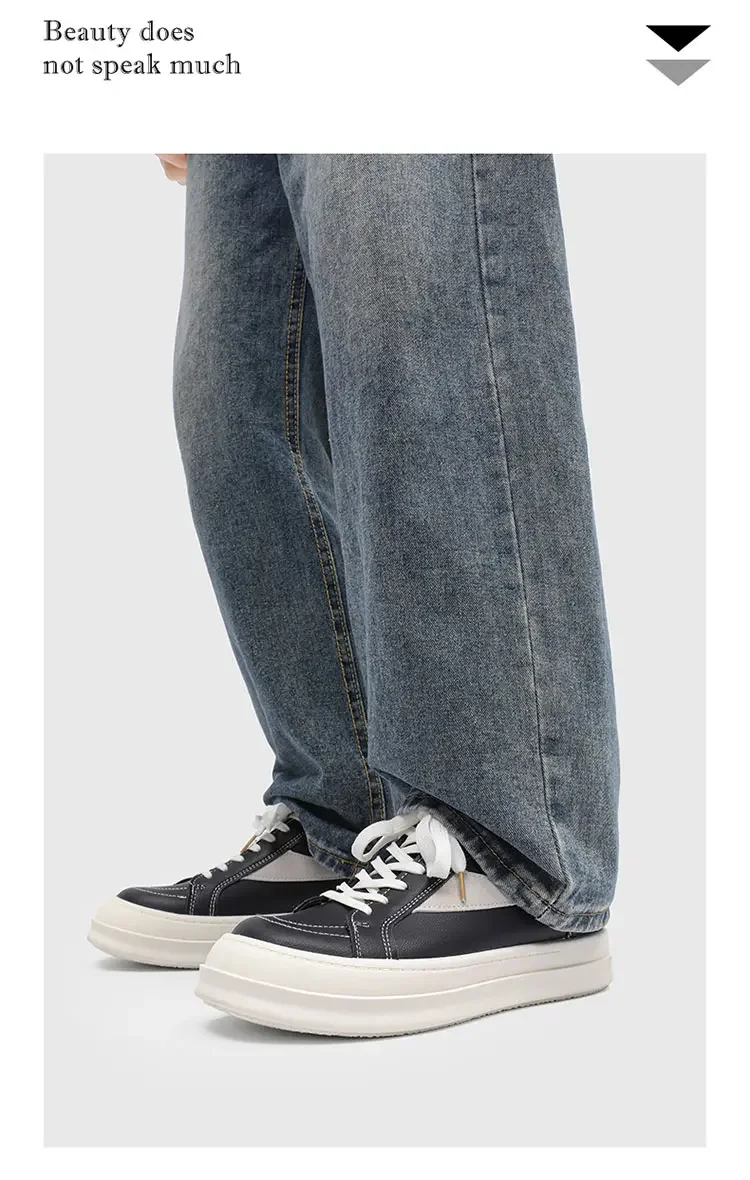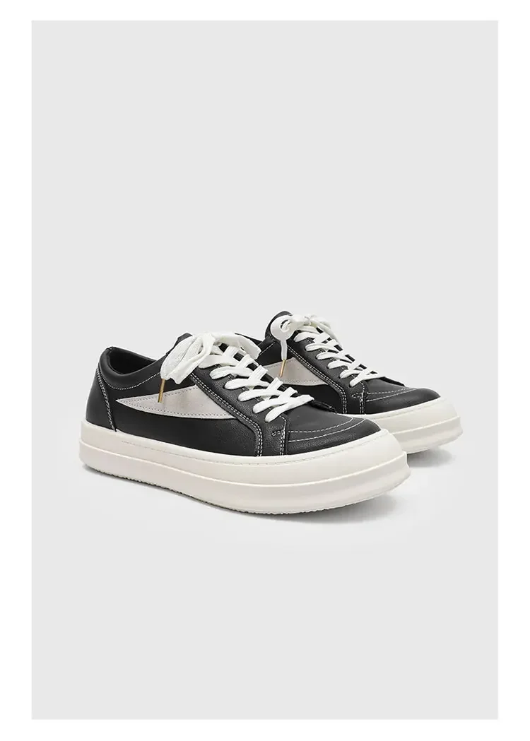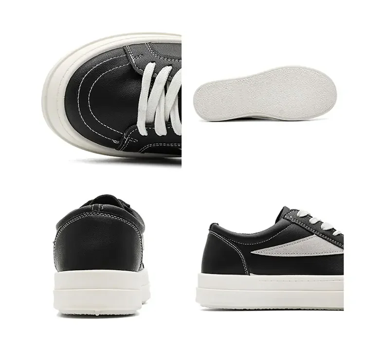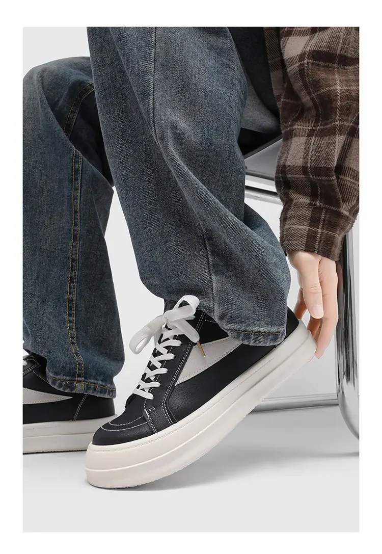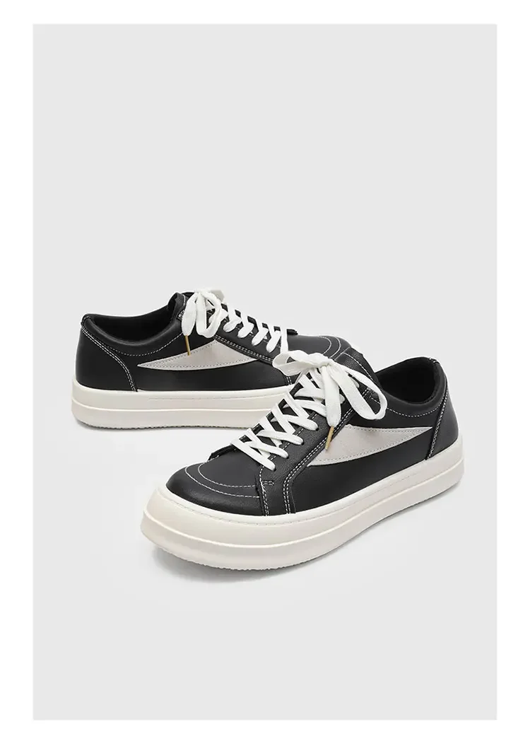 Men's Shoes 2025 New Spring Autumn Design Low Help Casual Thick Bottom Heightening Board Shoes Leather Surface