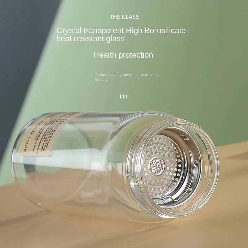 Simple Glass Water Bottle with Tea Spaced, Portable, Heat Resistant, Transparent, Summer Tumbler, Small, 350ml, 550ml